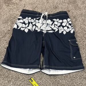 SPEEDO Men's Hawaiian Board Shorts Size L In Navy/White