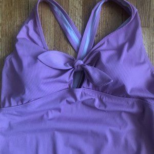 Plus Size Active Chlorine Resistant Rib Tie One Piece Swimsuit