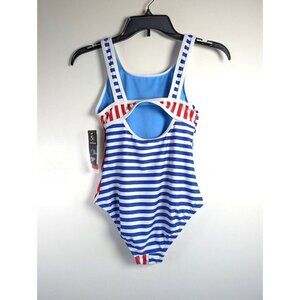 SPEEDO Swimsuit Kid Girls Size 12 One Piece Stripe Chlorine Resistant Summer NEW