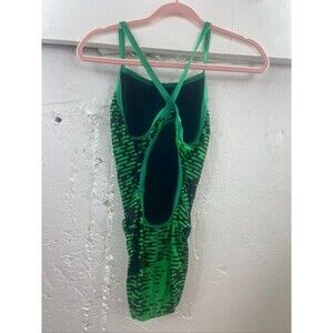 SPEEDO WOMENS SIZE 10/36 GREEN BLUE CROSS BACK ONE PIECE BATHING SUIT