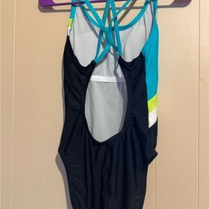 SPEEDO Women's Size 6 Active Diagonal Colorblock One Piece Swimsuit black green
