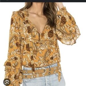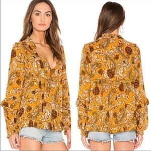 SPELL Fall Brown Etienne Blouse Paisley Floral Top Size Small NWT