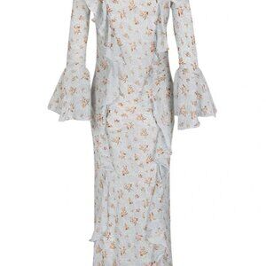 SPELL Gypsy NWOT Fleur Frill Bias Maxi flowy dress In Teapot Blue M