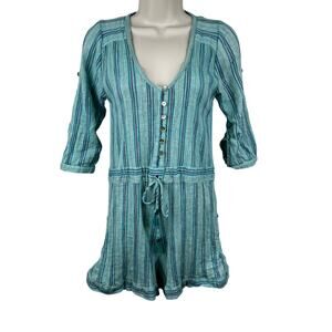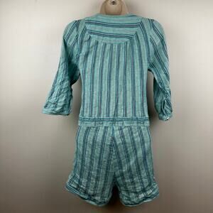 SPELL Island Boho Playsuit Romper Cotton Linen Blend Gauzy Striped Coastal Festival Seafoam Green Women's XS