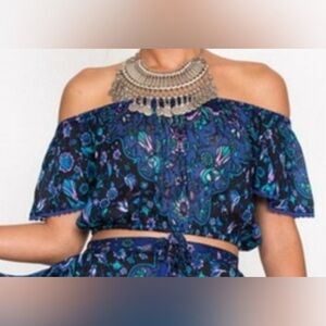 SPELL Kiss The Sky Top original Spell hand-drawn print Bluejay S crop unicorn