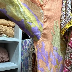 @christelclair Hello! Of you compare pics 2 and 3, you see the π kimono opening was sewn shut. Thus, sleeves are more of a robe silhouette than kimono. Happy to post video, more pics upon request. Thank you!
