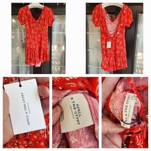 SPELL & THE GYPSY Collective Celestial Mini Dress Lace Up Back in Red