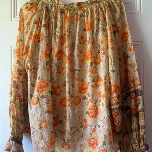 SPELL & The Gypsy Seashell Floral Semi Sheer Long Sleeve Fall Print Blouse