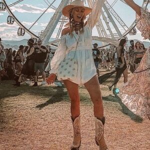 cottagecore romper, western romper, linen romper, festival outfit, white playsuit, spell clothing, soft prairie style, desert vibes, cowboy boots outfit, romantic one piece, lace detail romper, western summer look, Marfa outfit, vintage style inspo, boho cottage