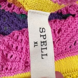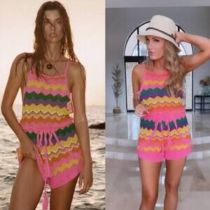 SPELL Ziggy Sleeveless Crochet Romper in Sorbet Stripes Size XL