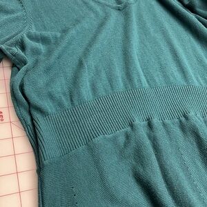 SPENCE Teal V-Neck 3/4 SLV Ribbed Waist Soft Scallop Hem Career Sweater Dress 1X