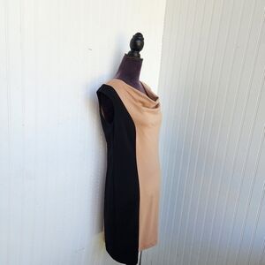 SPENCE Women's Dress Colorblock Tan Black Sheath Panel Detail Sleveless Sz 8