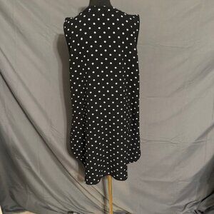 The SPENSE Polka Dot Blouse in size XL is a stylish and versatile addition to any woman's wardrobe. This sleeveless blouse features a classic collared neckline and button closure, making it perfect for both casual and more formal occasions. The black and white polka dot pattern adds a fun and playful touch to the basic style, while the lightweight fabric ensures comfort and ease of wear. With a regular fit and XL size, this blouse is designed to provide a flattering and relaxed silhouette for any body type.