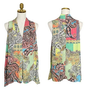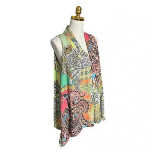 SPENSE | Women’s Boho Colorful Sharkbite Hem Paisley Print Patchwork Size M