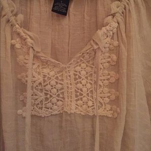 SPENSE cream colored gauzy blouse adorned with crochet inset - size small
