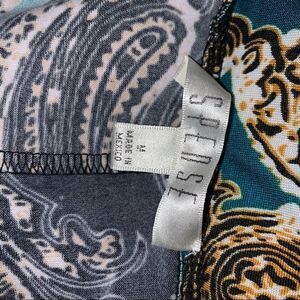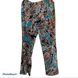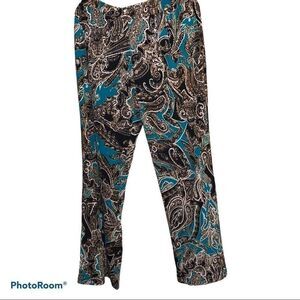 Stretchy comfortable teal and brown paisley palazzo pants.