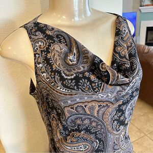 SPENSER JEREMY 100% SILK PAISLEY COWL NECK SLEEVELESS LINED MIDI DRESS 4