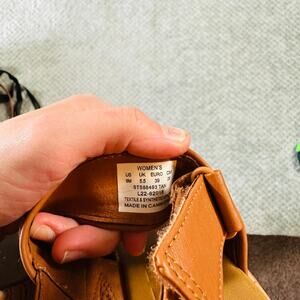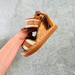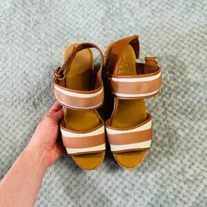 SPERRY Kennedy Plushwave Brown/White Strappy Wedge Sandal Heel Wmns 8