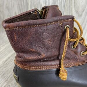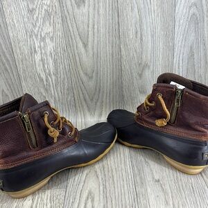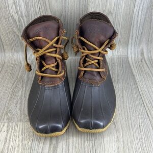 Pre owned SPERRY MID CALF RAIN BOOTS SALTWATER CROC LEATHER DARK BROWN