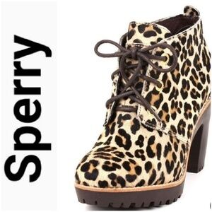 SPERRY Pony Hair Animal Leopard Print Ankle Boot Booties 6!