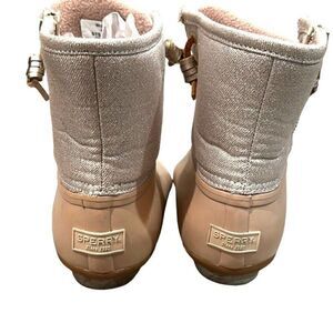 SPERRY Rose Gold Pink Silver Saltwater Duck Boots Shoes Waterproof Rubber Boots Size 8