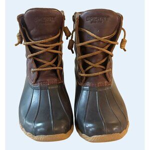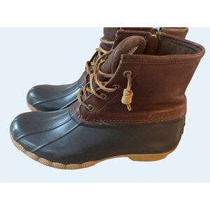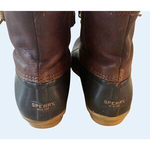 Nice pair of Sperry waterproof duck boots. Rawhide lacing with side zipper. Lined interior. Leather / rubber. Size 7.5. Pre-owned and gently worn in really nice condition!