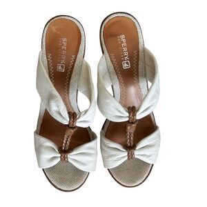SPERRY Shoreham Nude Brown Leather Wedge Slides Sandals Size 7.5 M