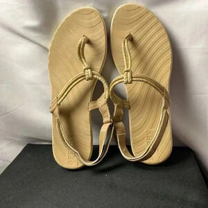 SPERRY TO SIDER WO SIZE 8 GOLD THONG SANDAL ADJ ANKLE STRAP HOOK LOOP CLOSE