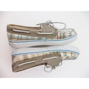 SPERRY TOP SIDER KHAKI & AQUA BROWN PLAID CANVAS BOAT SHOE WOMENS SZ 6.5M