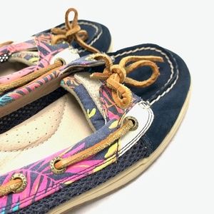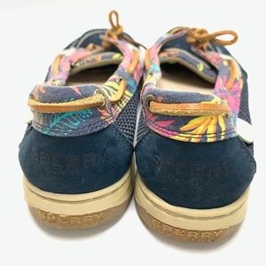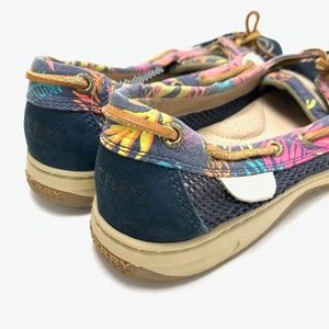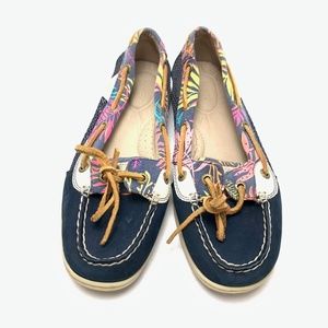 SPERRY TOP SIDER Navy Blue Floral Palm Trim Boat Shoes Loafers Real Leather 7.5