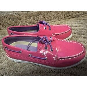 SPERRY TOP SIDER Patent Leather Pink Purple 2 Eye Boat Shoe Size US4.5m