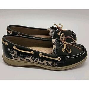 SPERRY TOP SIDER Shoes Womens 9 Black Brown Cheetah Leopard Angelfish Boat Shoes