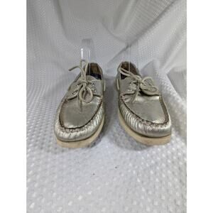 SPERRY TOPSIDER! GOLD GENUINE LEATHER BOAT SHOES NON-MARKING WHITE SOLE! SZ 9.5M