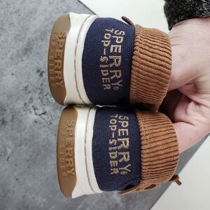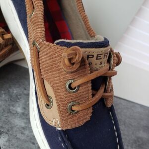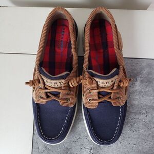 SPERRY TOP SIDER NAVY CANVAS AND TAN CORDUROY 5.5
