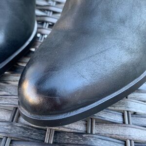 Excellent used condition, some light scratches in leather, wear to suede, and soles. The left boot has some sticky residue on the insole which over time I’m sure will wear off.