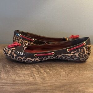 SPERRY, Top sliders, LAUREL DARK BROWN / LEOPARD WOMANS 10M. Condition is preowned from a smoke free home. Please see all pictures posted. Very cute pair of sperrys! Could be easily dressed up or would look great with a pair of jeans. Soles have little to no wear. There is some staining to the back right shoe. I have photographed it for reference. Any other questions please ask.
