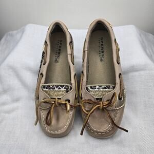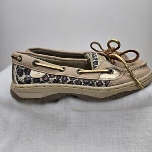 SPERRY Top-Siders Tan Boat Shoes with Glitter Leopard Print Pattern Size 13.5