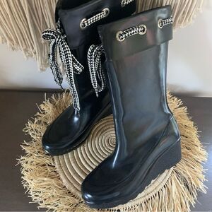 SPERRY Women’s Mid Calf Lace Fold Over Wedge Waterproof Rain Boots Black Size 7
