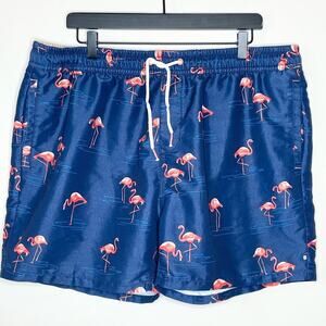 Men’s Sperry navy & pink flamingo print swim trunks size XL