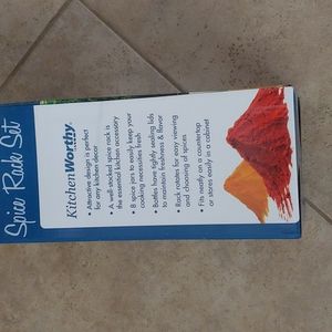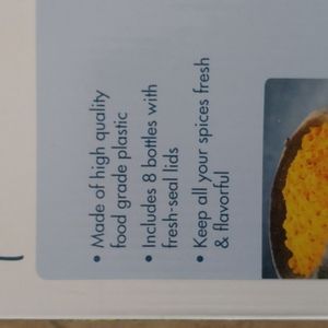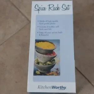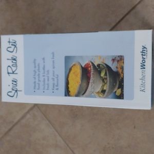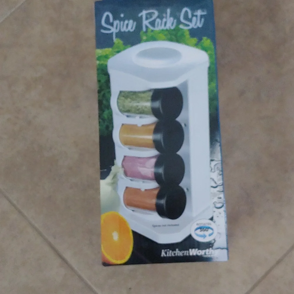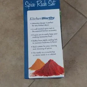 Keep your kitchen flowing with this handy revolving spice rack by KitchenWorthy. Featuring eight (8) spice jars per rack, this kitchen accessory is sure to help you create tasty meals for years to come. Featuring a rotating back for easy viewing, with this wonderful spice rack, you can keep your spices and herbs easy to get to always. Colors/finish: White Materials: AcrylicQuantity: One (1)Setting: IndoorDimensions: 10.5 inches high x 4.75 inches wide x 4.75 inches longIncludes eight (8) spice jars to easily keep your cooking necessities freshBottles have tightly sealing lids to maintain freshness and flavorDoes not include spices.