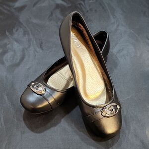 SPICE ROUND TOE SLIP-ON WOMEN"S FLAT SHOE SIZE 10 COLOR BLACK MADE WITH ALL MAN-MADE MATERIALS THIS ITEMS IS PRE-OWNED EXCELLENT CONDITION WITH ONLY LIGHT SIGNS OF WEAR IFANY CHECK THE PICTURES (FYI THIS ITEMS HAVE SMALL DAMAGE INSOLE CHECK THE PICTURES)