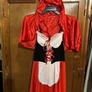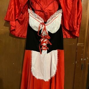 🎃SPICY RED RIDING HOOD 🐺👵 COSTUME, HOODED CAPE, LACED BODICE, SIZE MEDIUM