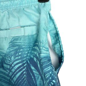 SPICY TUNA Aqua Swim Trunks Size Small Light Blue Palm Leaf Print Mesh Lined
