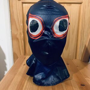 VERY MILD COMMON WEAR. THE MASK HAS CUT HOLES ON THE EYES. CHILD STATED THAT IT WAS IMPOSSIBLE TO SEE THROUGH THE WHITE MESH