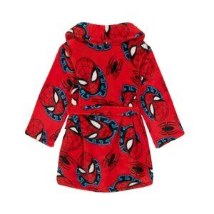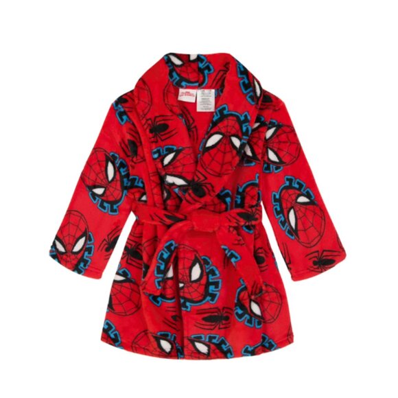 Marvel Spider-Man Toddler Boys Pajama Robe Shawl collar Tie front Long Sleeves. A robe so soft, even Spidey would approve! This Marvel Spider-Man Pajama Robe wraps your little one in up in super-soft plush fleece with cool Spider-Man graphics and an easy tie-front waist. Crafted in ultra-cozy 100% polyester, this pajama robe is easy to layer over his favorite character pajamas for sweet snoozes or Saturday lounging. Cozy up and let the snuggles begin.