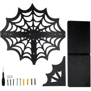 New in box with tools to put it together. Ditch the cobwebs on your walls for this Spiderweb Mini Shelf Kit. Perfect for displaying creepy curio decor, toys and knick-knacks, this floating shelf features a full spooky spider-web cut out backing and a shelf which measures 13.25" L (33 cm) x 4.5" W (11.5 cm) and is constructed by wood in a black satin finish. This eye-catching floating shelf includes everything you need for easy assembly, so there’s no delay in bringing some spooky home goods to your gothic abode. Includes a small screwdriver, 3 screws, 2 drywall anchors with screws, 2 pegs, and 2 self adhesive rubber bumpers. Measures approx. 12" H x 13.25" W x 4.75" D (31 cm x 33 cm x 12 cm) and has a max load bearing capacity of approx. 1 kg (2.2 lbs). Designed in California. (Dracula decor seen in 3rd pic NOT included, just helps to show the size). The last pic shows all the shelves (and some other things such as the Vampira vase and coffin mugs) that can also be found in my closet.