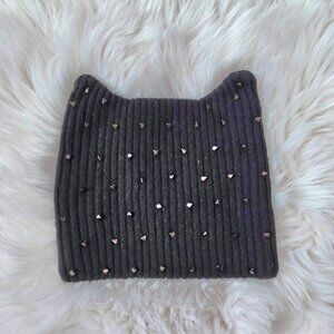 SPIKE Cat Ears Studded Knit Beanie Hat Woman's Size OS