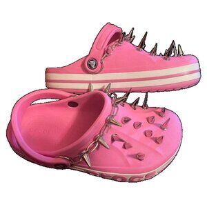 PRICE Punk Rock Goth BAYABAND CLOG CROCS with spikes. Pink and white, size 8.