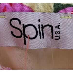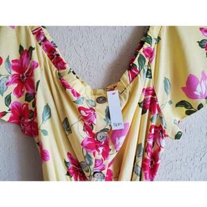 SPIN USA Women Plus 1X Dress Linen Blend Yellow Floral Off Shoulder Bust 42" NEW