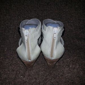 These are absolutely gorgeous...in a beige slightly distressed leather with great detailing and back zip. A cowboy style in a more feminine touch.